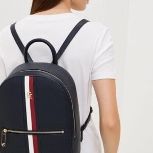 Γυναικεία τσάντα πλάτης της εταιρείας Tommy Hilfiger κατασκευασμένη από δερματίνη σε navy μπλε χρώμα. Ιδανική επιλογή για όλες τις ώρες της ημέρας. Το κύριο μέρος της τσάντας κλείνει με φερμουάρ, παρέχοντας ασφάλεια κατά τη μεταφορά των προσωπικών αντικειμένων. Διαθέτει ρυθμιζόμενο λουράκι.