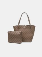 Σετ γυναικεία τσάντα shopper της εταιρείας Guess κατασκευασμένη από δερματίνη. Ιδανική επιλογή για όλες τις ώρες της ημέρας, φοριέται περασμένη στον ώμο.