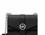 Michael Kors Greenwich Small Δερμάτινη Γυναικεία Flap Bag Χιαστί Μαύρη